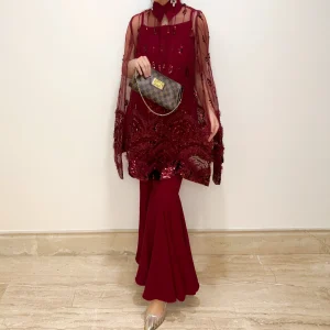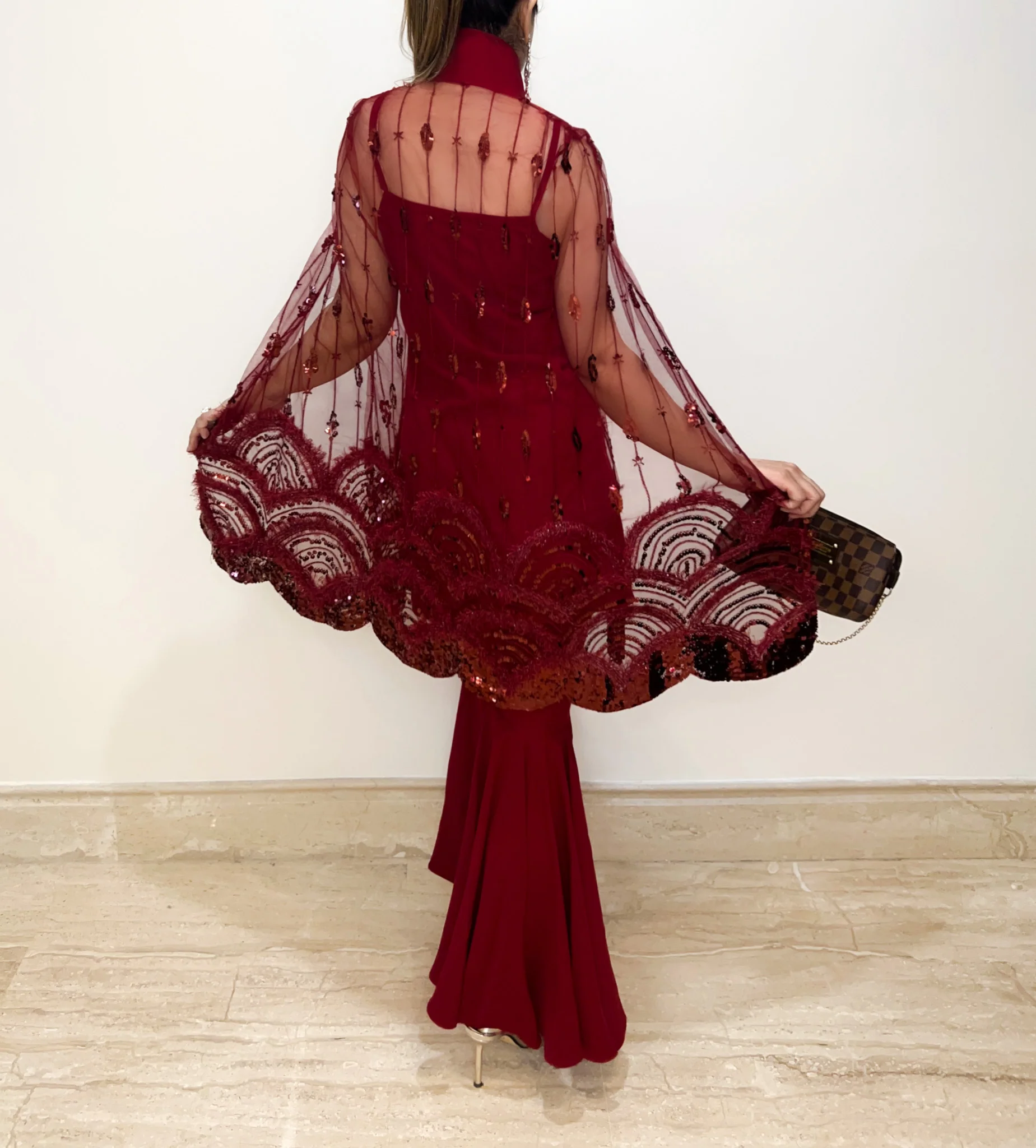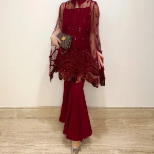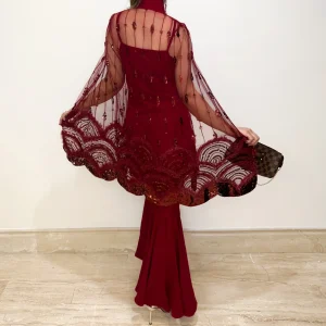 Alluring Sequnce Net Cape (30″) with Inner and flare Pants (38)
