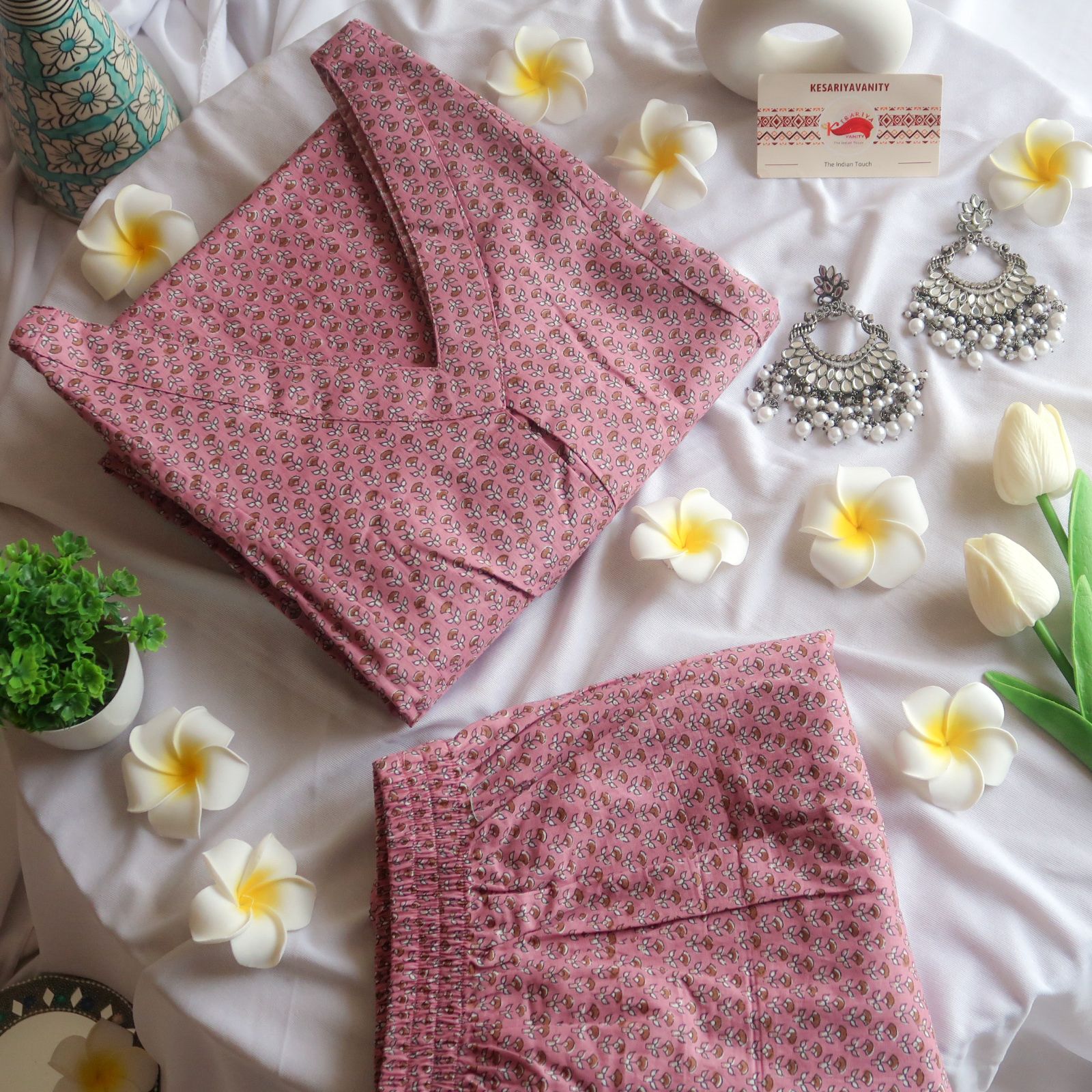 Whether you’re attending a social gathering, a festive celebration, or simply spending a day out with friends, the “Mauve Petal Blossom” two-piece cotton kurta and pants set is a statement of understated elegance. Embrace the soothing aura of mauve pink and the grace of brown flower motifs, making this outfit an ideal choice for those who appreciate the fusion of traditional Indian attire with a contemporary touch. It’s a sophisticated choice that promises both comfort and style, sure to leave a lasting impression wherever you go.