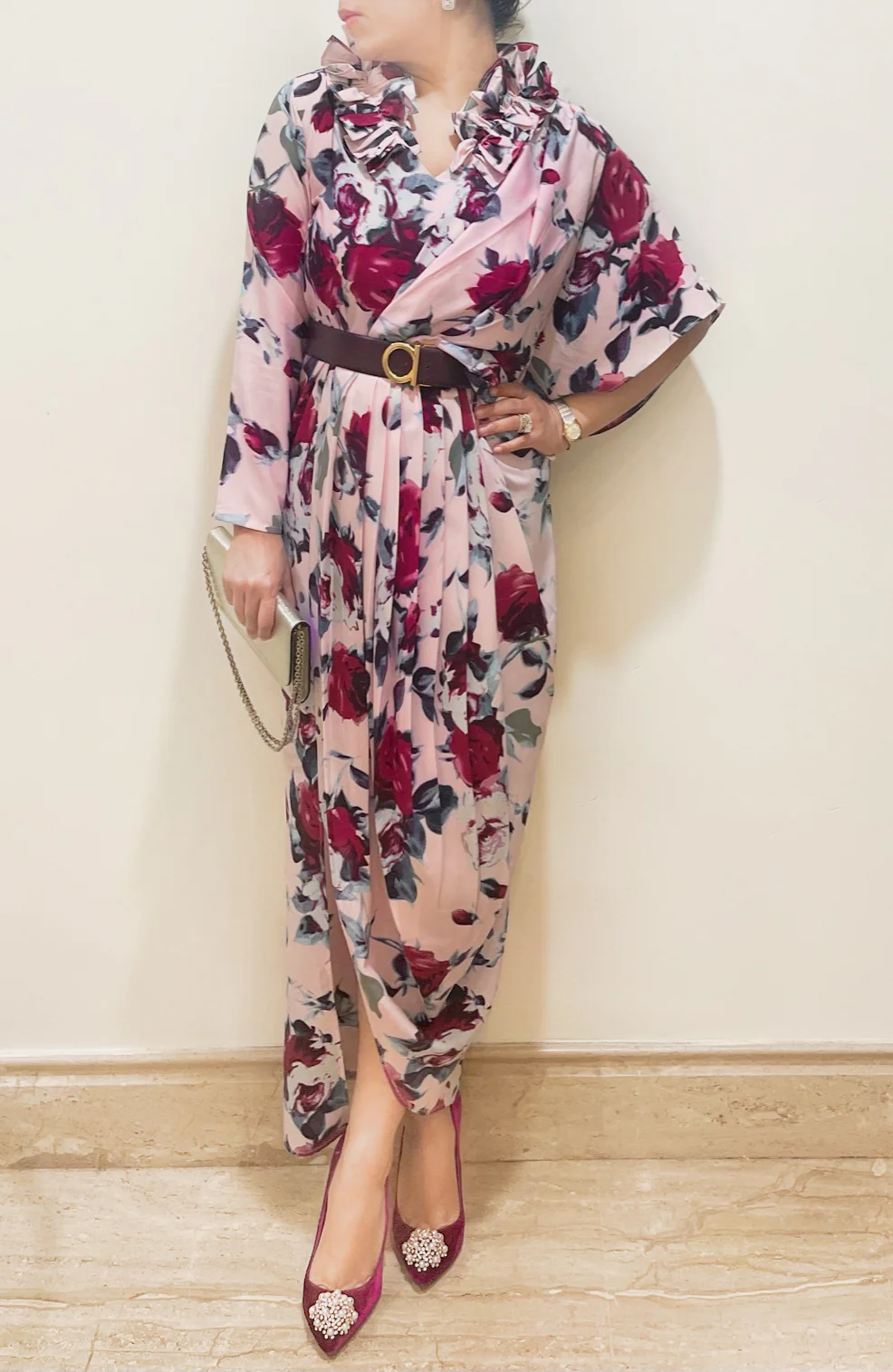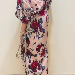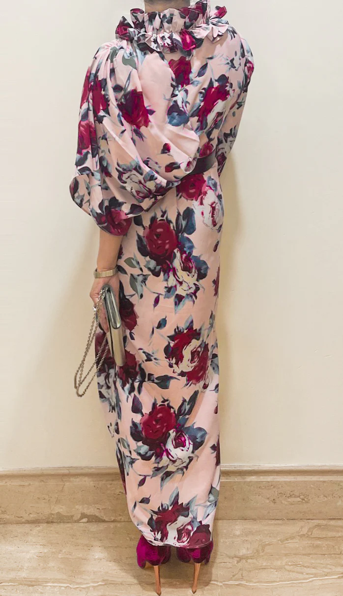 Ruffle neck maxi with drape (55″)